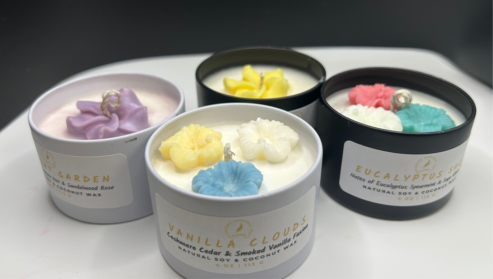 Mini Featherand Signature Candle 4 oz · Hand-Poured · Floral Accent