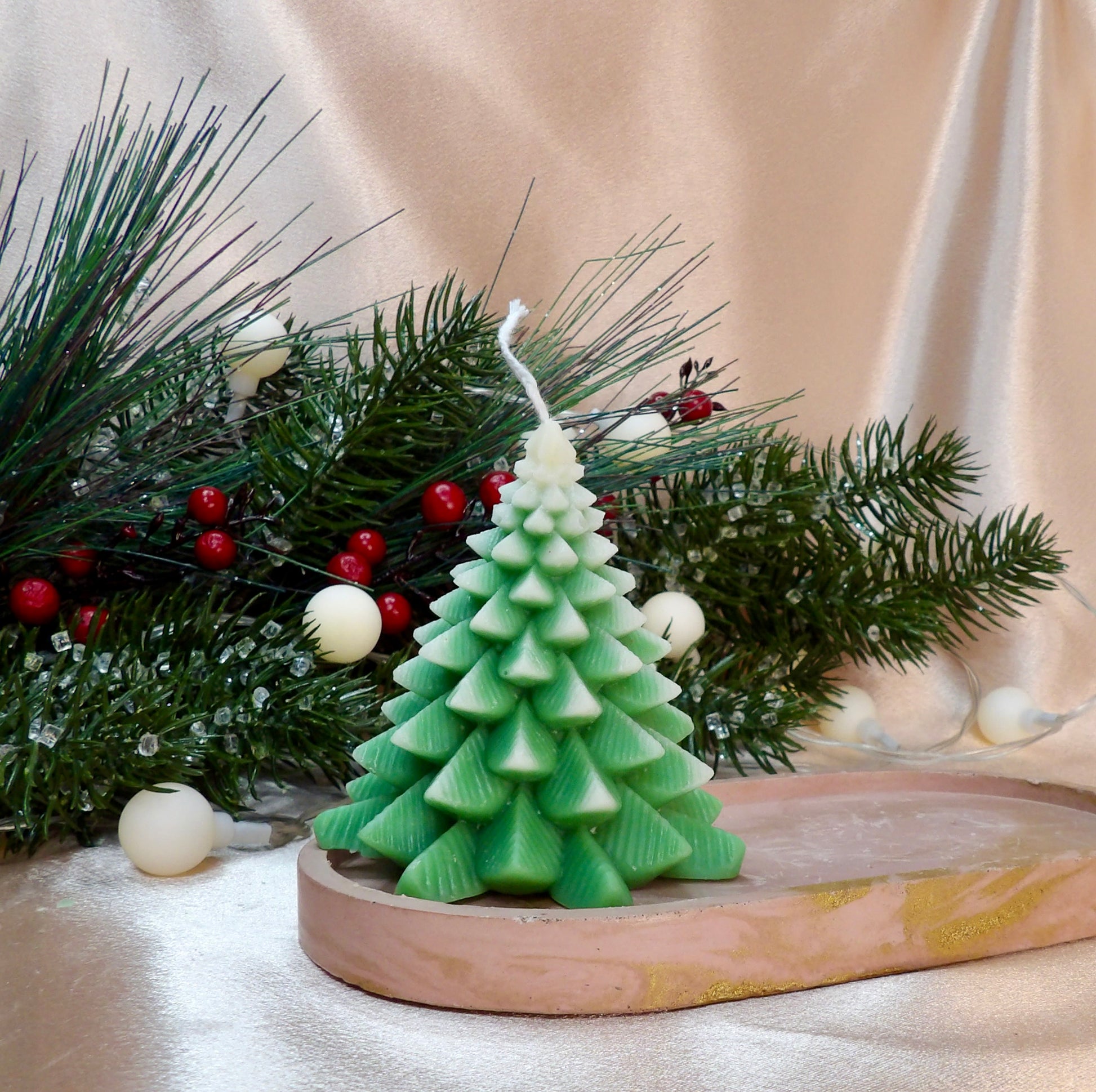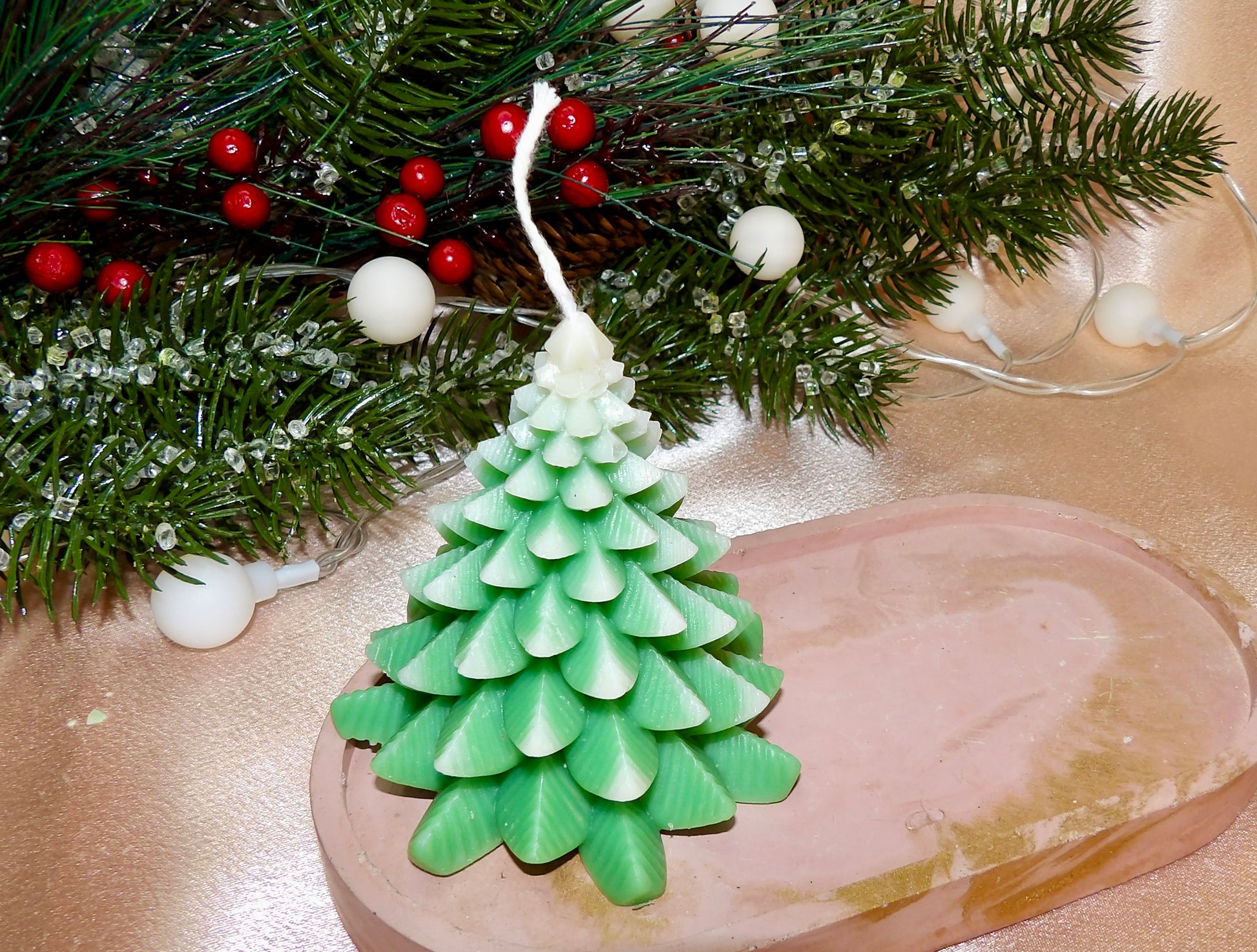 - Decorative frosted Christmas tree candles