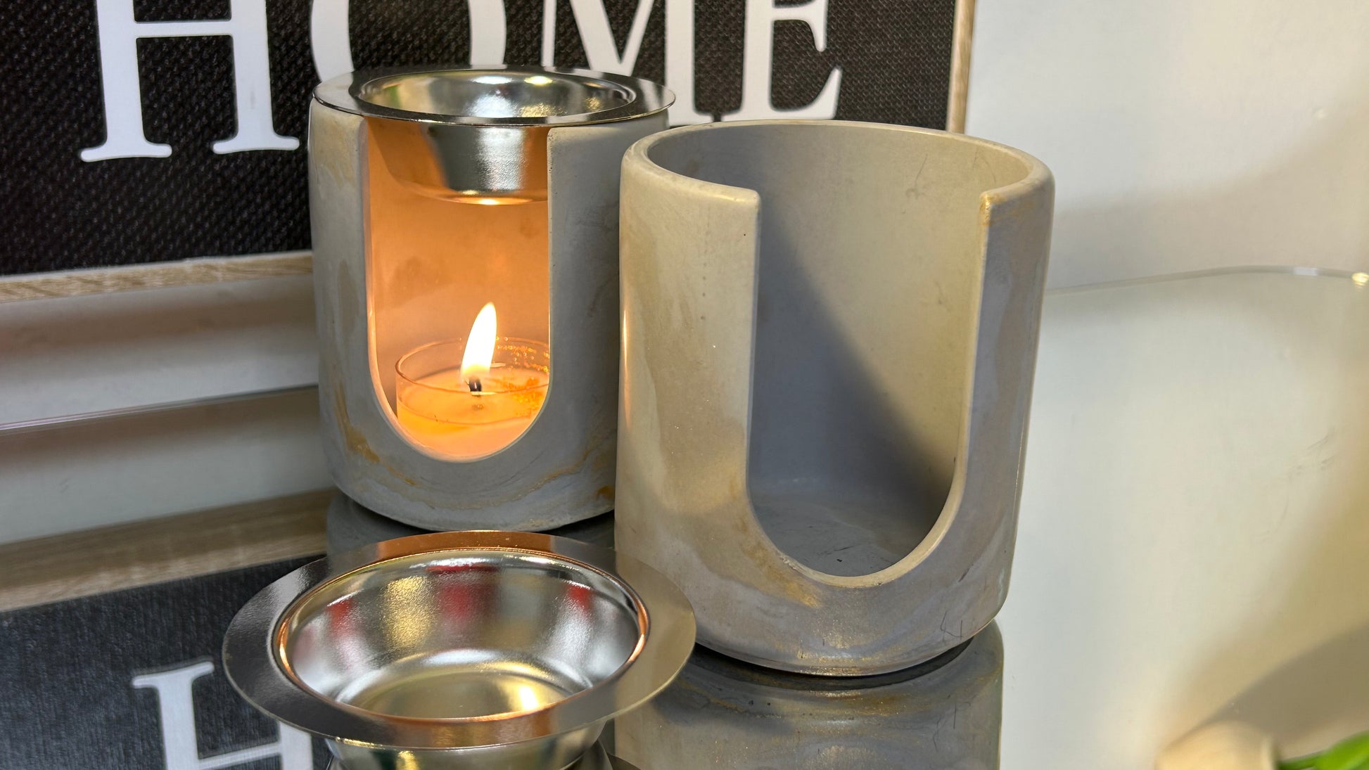 The contrast of cool silver and warm gold against the industrial cement base creates a balanced, eye-catching look that suits any décor — from minimalist to luxe. Just add a tealight below and enjoy a gentle diffusion of fragrance and glow.