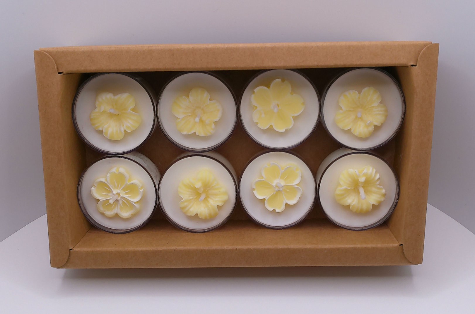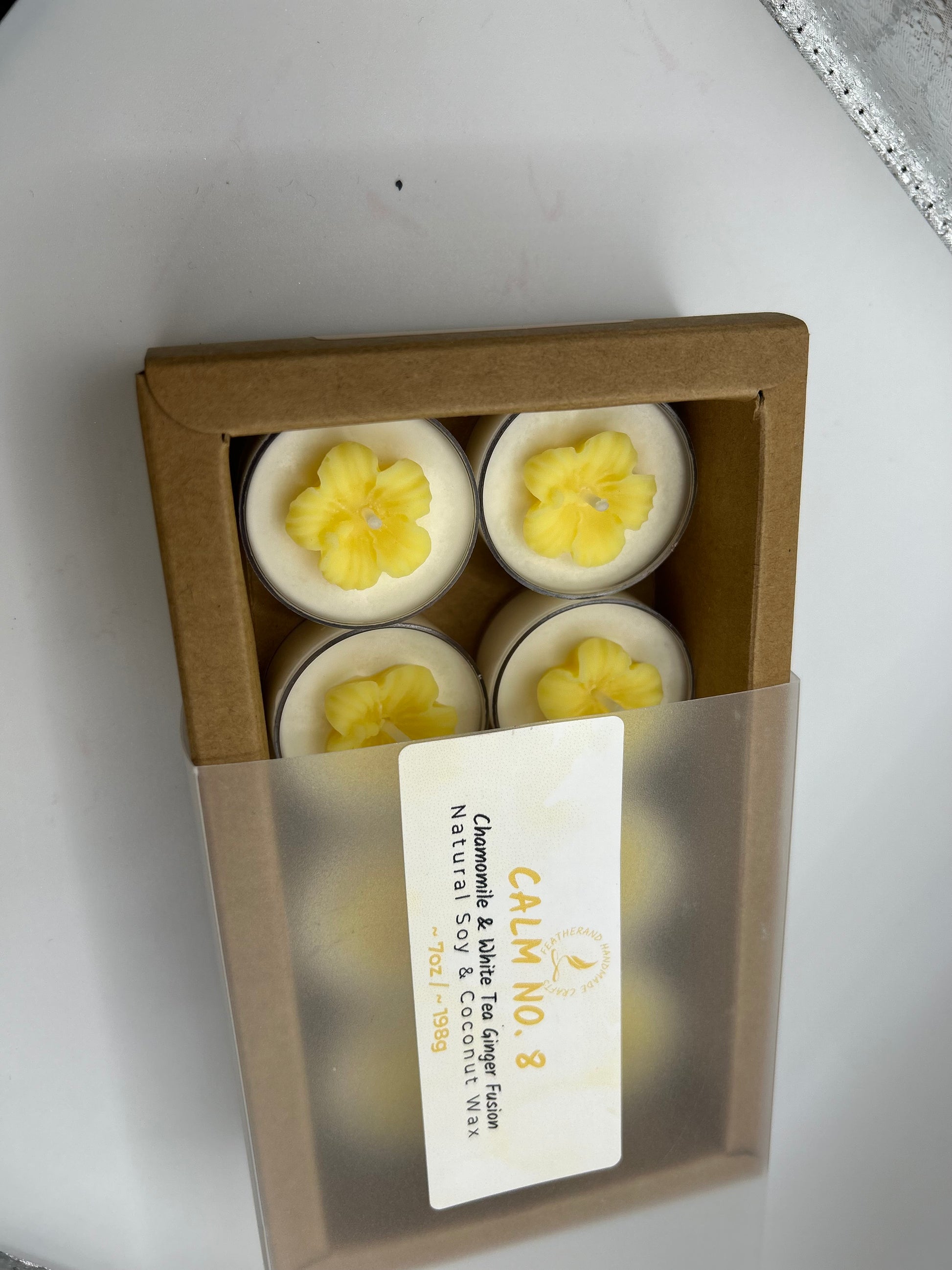 Tealight Set Featherand Signature – 8 Pack Natural Soy Wax · Delicate Floral Accents